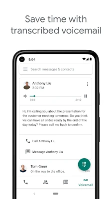 Google Voice pruža vam telefonski broj za pozive, SMS-ove i govornu poštu. Funkcionira na svim pametnim telefonima i računalima, osiguravajući sinkronizaciju na svim vašim uređajima. Budite povezani bilo gdje – u uredu, kod kuće ili u pokretu.
