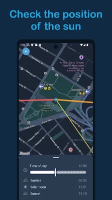 Istražite putanju sunca kao nikada prije koristeći interaktivne karte koje vizualno prikazuju njegov položaj. Bez obzira planirate li putovanje ili vas zanima sunčeva aktivnost na drugom kraju svijeta, funkcija ručnog pretraživanja omogućuje vam provjeru vremena izlaska i zalaska sunca za bilo koju lokaciju na planetu. Želite li pogledati unaprijed ili se prisjetiti prošlosti? S praktičnim alatom za odabir datuma možete lako provjeriti sunčane cikluse za bilo koji datum, bio on sutra ili prije nekoliko godina. Također su uključena precizna vremena za zlatni i plavi sat, kao i različite faze sumraka: civilni, nautički i astronomski.