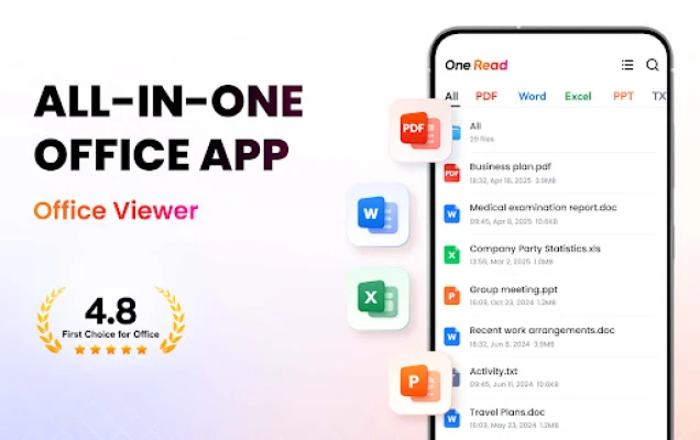 S All Document Readerom dobivate puno više od običnog preglednika. Njegov napredni upravitelj dokumenata nudi intuitivan prikaz strukture mapa, omogućujući vam brz pristup specifičnim vrstama datoteka. Svi su vaši dokumenti pregledno popisani na jednom mjestu, a omiljene datoteke možete označiti za trenutno otvaranje. Bilo da vam je potreban brz pregled PDF-a s opcijama zumiranja i skoka na stranicu, fluidno čitanje Word dokumenata ili učinkovito pregledavanje Excel tablica i PPT prezentacija u visokoj rezoluciji, ova aplikacija donosi besprijekorno iskustvo čitanja.