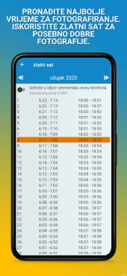 Kako ne biste propustili nijedan čaroban trenutak, aplikacija nudi praktične dnevne obavijesti. Možete ih prilagoditi tako da vas podsjete na nadolazeći izlazak sunca ili početak zlatnog sata, osiguravajući da ste uvijek korak ispred. Bez obzira planirate li pustolovinu na otvorenom, fotografiranje krajolika ili jednostavno želite uživati u prirodnoj ljepoti oko sebe, ova je aplikacija stvorena da obogati vaše iskustvo. Otkrijte kako jednostavno možete iskoristiti svaki blistavi trenutak dana, bez obzira gdje se nalazili.