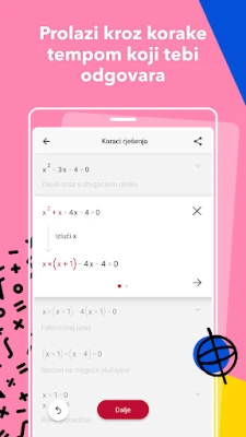 Ali Photomath nudi mnogo više od pukog skeniranja. Za one koji preferiraju interaktivan pristup, na raspolaganju je napredni znanstveni kalkulator unutar aplikacije, koji omogućuje unos i uređivanje jednadžbi s vrhunskom preciznošću. Ono što Photomath zaista izdvaja jest njegova sposobnost da svaki zadatak secira na detaljna, korak-po-korak objašnjenja. Ne samo da ćete dobiti ispravan odgovor, već ćete razumjeti i temeljnu logiku koja stoji iza njega, gradeći istinsko razumijevanje i samopouzdanje. Istražite više načina rješavanja, pristupite interaktivnim grafovima za vizualizaciju složenih funkcija i uživajte u podršci na preko 30 svjetskih jezika, čineći Photomath vašim globalnim matematičkim partnerom.