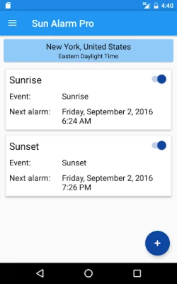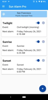 Sun Alarm je idealan alat za usklađivanje s prirodnim ritmom. Postavite precizne alarme za izlazak i zalazak sunca, kao i druge važne solarne događaje. Prilagodite svoj dan prirodnom svjetlu i nikad ne propustite savršen trenutak uz Sun Alarm.