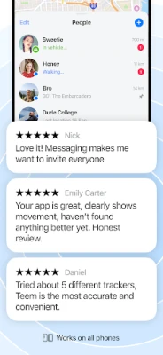 Uz pomoć preciznog GPS sustava, Teem pruža ažuriranja lokacije u stvarnom vremenu s iznimnom točnošću, koristeći minimalnu energiju baterije. Pratite rute članova obitelji, pregledajte povijest kretanja i primajte automatske obavijesti kada netko stigne na omiljeno mjesto poput doma, škole ili posla. Osim toga, možete slati brze poruke unutar aplikacije i provjeravati vremensku prognozu na lokacijama vaših bliskih, pokazujući im da vam je stalo. Teem objedinjuje funkcije obiteljskog lokatora, tragača za telefonom i alate za pronalazak djece u jednom jednostavnom i učinkovitom sučelju.